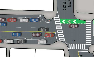 But according to Nick Jackson of Toole, the cost of redesigning the traffic signals along the street to include phases for bicycles would be prohibitive, and including bikes with the all-walk phase just hasn’t been done in the city yet. A cost estimate for the signal redesigns was not provided but Jackson indicated it would be in the “millions.”