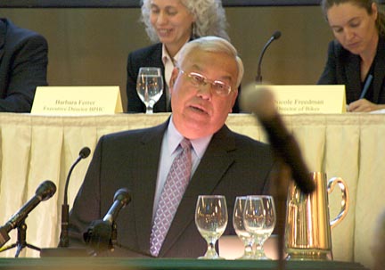 Mayor Thomas Menino addressed cyclists after a warm introduction from cycling and public health advocate Steve Miller.