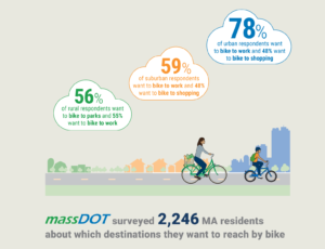 We are also pleased to see that MassDOT has created a “Potential for Everyday Biking” analysis, which predicts where people would regularly bike if safe bikeways were accessible, that will be used to prioritize bike infrastructure in impactful areas.