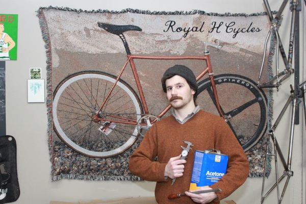 There must be something strange in the tap water from the Quabbin Reservoir that makes the Boston area home to almost a dozen custom bicycle builders. Many have heard of Geekhouse Bikes, Seven Cycles, or Dutch Bike Co., but the Boston Cyclist Union recently spent an evening getting to know the new kid on the block: Royal H Cycles. The man behind the torch is Bryan Hollingsworth, a Pennsylvania transplant who has taken up shop in the same building in Somerville once occupied by the now defunct Merlin Cycles.